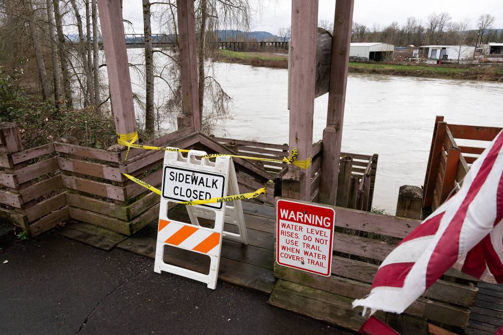 On Friday afternoon, water levels along the Snohomish River were high, forcing the closure of the riverfront trail in Snohomish. That city is also expected to see major flooding around 11 p.m. Friday, with an expected crest of 30.5 feet, according to data from NOAA. Low farmlands and some roads could be flooded, according to NOAA.