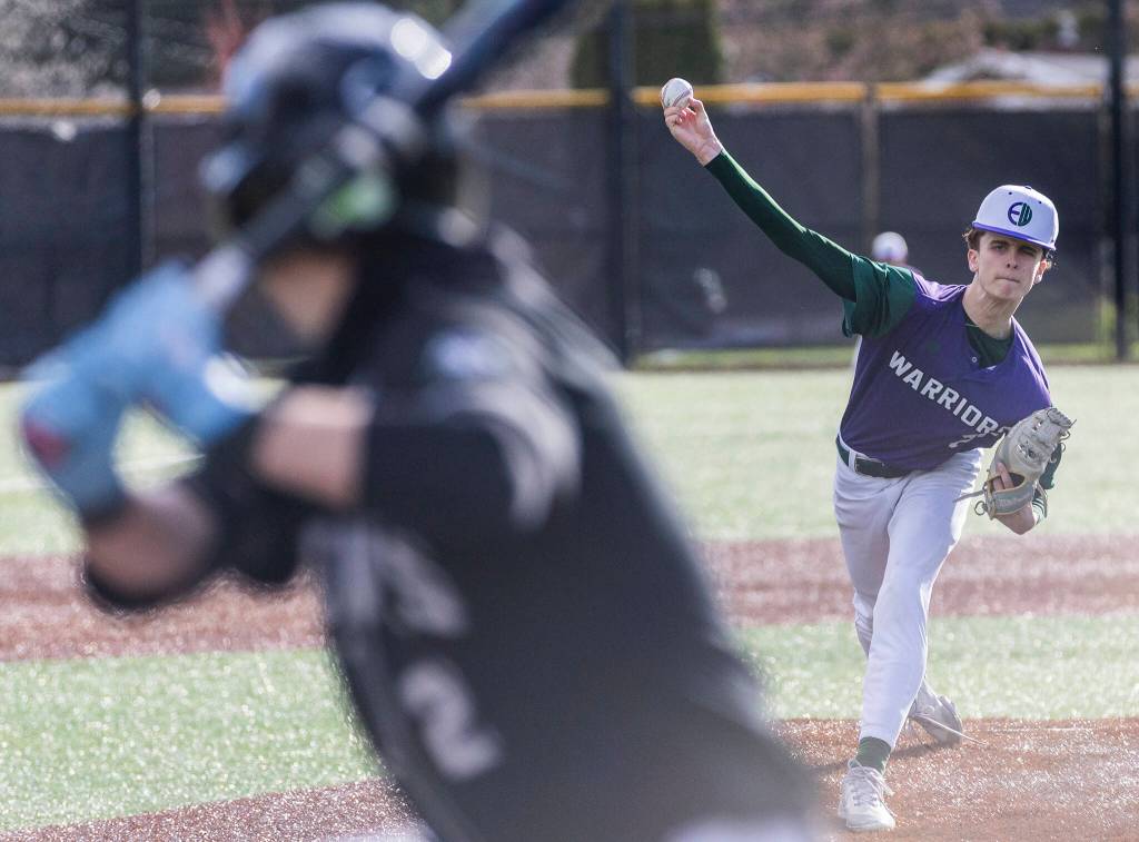 LYNNWOOD — Elite pitching from either side pushed the Warriors (2-2 overall, 2-0 league) and Mavericks (0-4, 0-2) to 10 frames, with E-W pulling away late. Declan Crawford (6.0 IP, 2 H, 2 R, 6 K) and William Alseth (4.0 IP, 2 H, 0 R, 4 K) combined for 10 strikeouts as the duo held Meadowdale to a 5-for-31 day with 10 walks. Kealoha Kepo’o-Sabate was phenomenal on the mound for Meadowdale, striking out 10 hitters in six innings while allowing just one hit and one earned run on a 4-for-32 day for Edmonds-Woodway. Finn Crawford scored on an error while DJ Karl scored on a ground-out at the top of the 10th to give E-W a lead it would not relinquish.