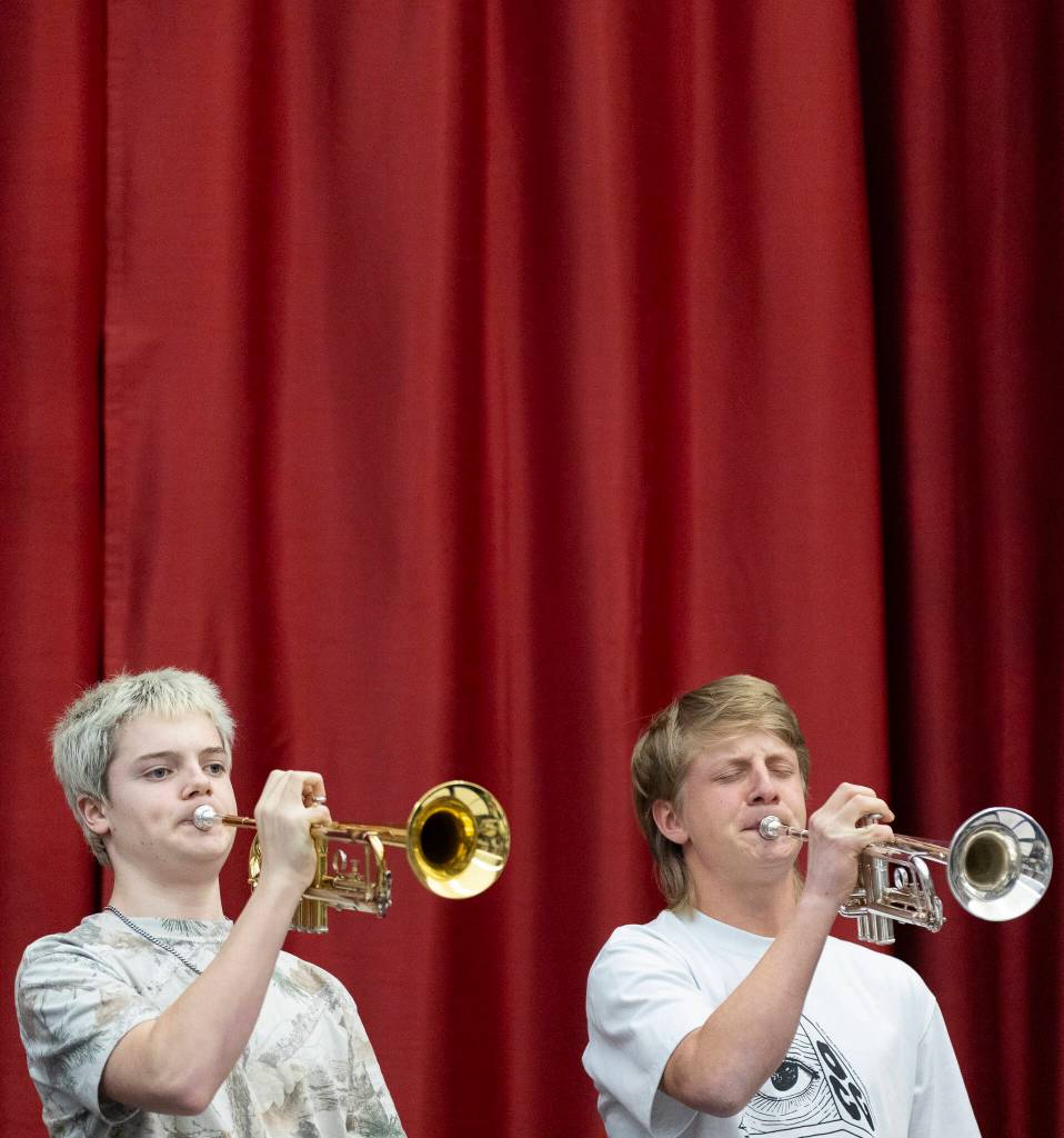 MOUNTLAKE TERRACE — Sounds of brass and percussion filled Room 231 at Mountlake Terrace High School on Monday afternoon.