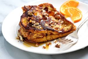 Pumpkin stuffed French toast, full of fall flavor, is a weekend treat worth cozying up at home for.