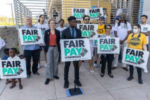 The group is looking to raise the city’s minimum wage from $16.66 per hour to $20.24 per hour…