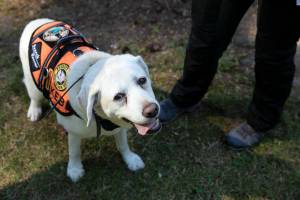 Suzanne Elshult’s search dog, a 12-year-old yellow Lab, has deployed on over 100 missions. She “is the consoler.”