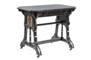 This Aesthetic Movement table — with its ebonized finish, incised gilt decoration and flower panels — sold for…