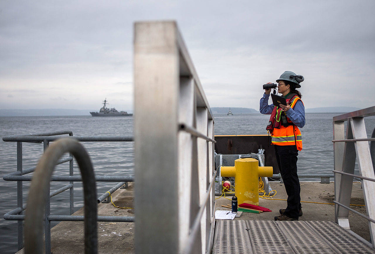 “You look for little heads and fins,” said Olson with Hart Crowser, a Seattle consulting firm. If fish, seals or orcas wander too close, Olson has the authority to halt work until the animals retreat to a safe distance.