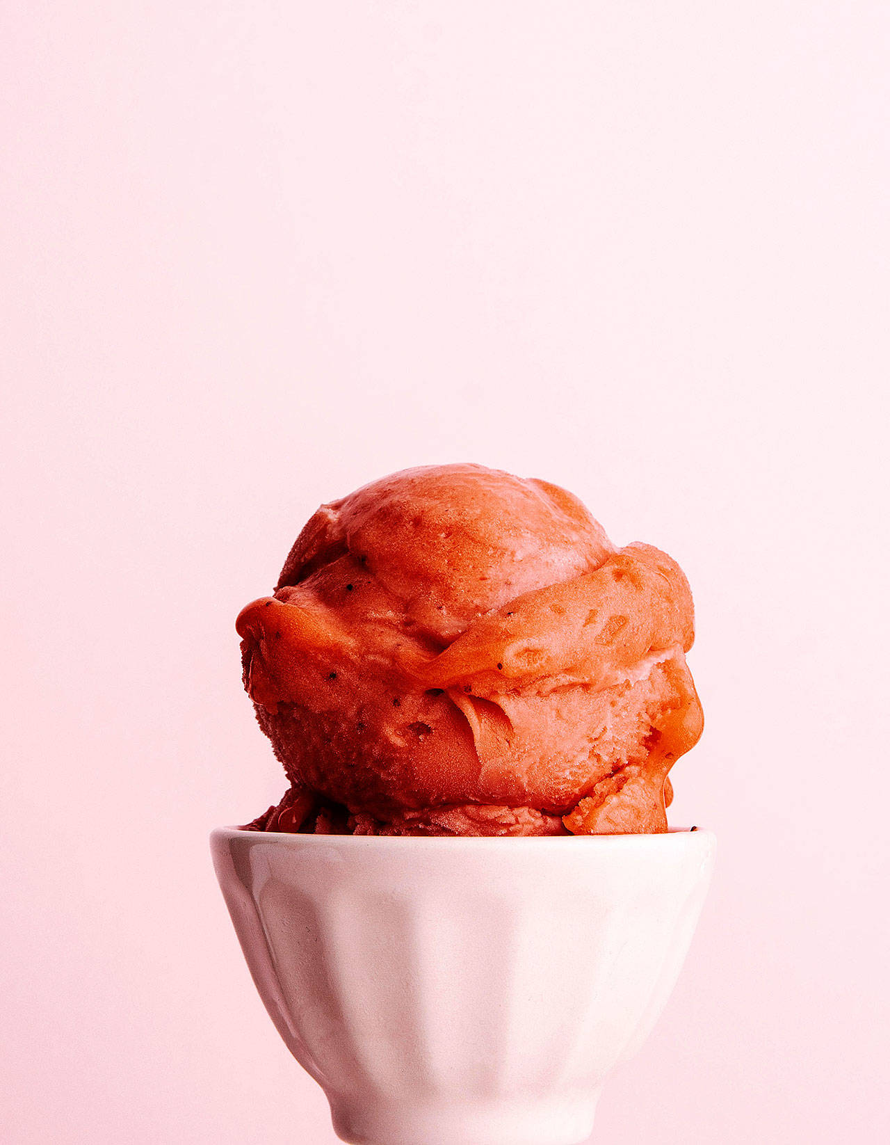 Transfer the sorbet, scraping every last delicious drop from the machine, into freezer-friendly containers. Cover with parchment paper, pressing it to the surface of the sorbet so it adheres, then cover with a lid. It’s OK if the parchment hangs over the rim. Store it in the coldest part of your freezer (farthest from the door) until firm, at least 6 hours. It will keep for up to 3 months. Makes about 2 pints.