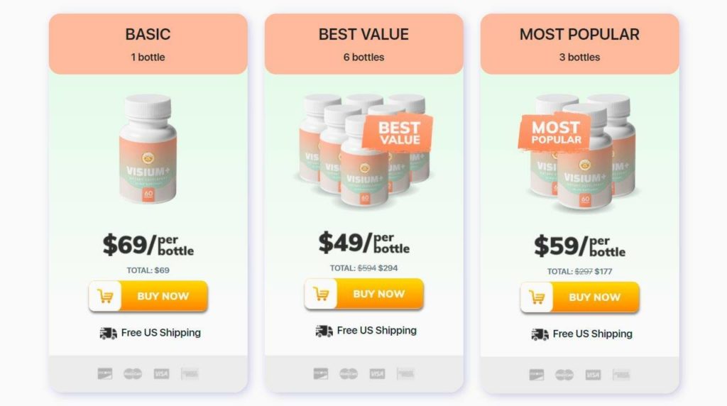 To purchase Visium Plus, you must visit the manufacturer’s website. They offer free shipping to every state in the US. But, if you’re outside of America and want Visium Plus, it will cost extra for international shipping. Below is the cost of the product;
