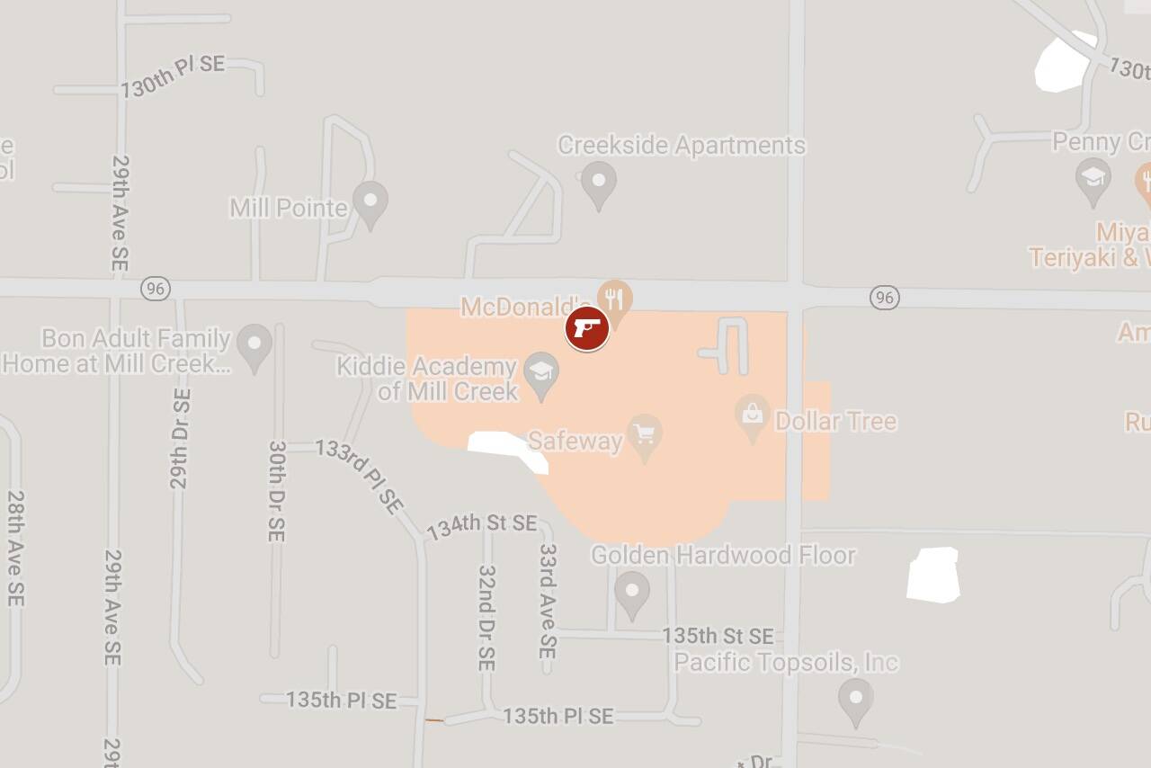 Around 2 a.m., reports of gunshots in the 3300 block of 132nd Street SE led officers to find a “male” with a gunshot wound at the Thomas Lake shopping center, Mill Creek police said in a press release Monday afternoon.