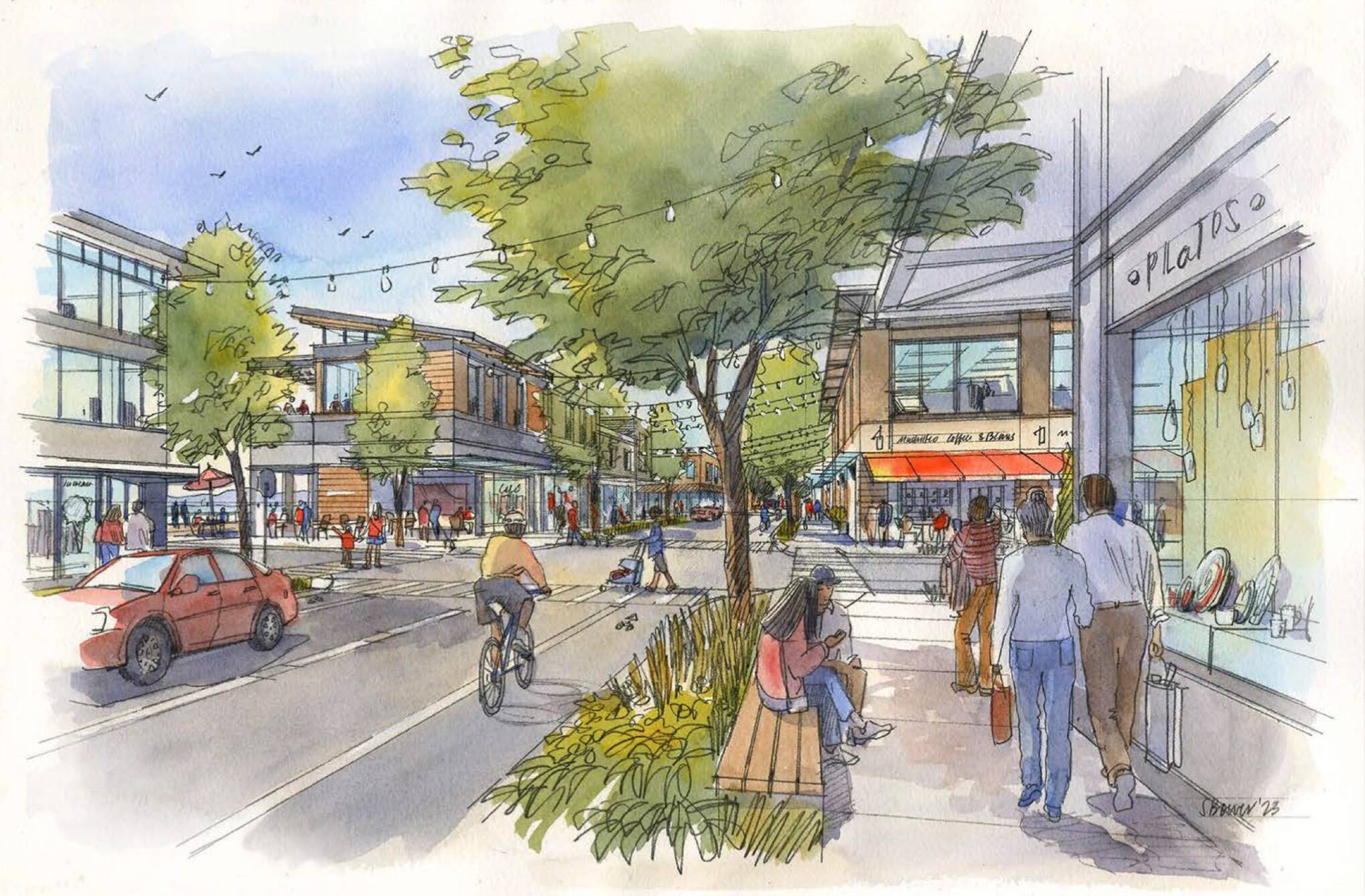 The new ferry terminal that opened nearly three years ago set the stage for development. The building’s longhouse form, a collaboration with Coast Salish tribes, has won state and national awards for design. For walk-on passengers, the overhead ramp is a huge step up from the rickety structure it replaced. It also has real restroom facilities for those in the vehicle holding lanes who can’t hold it.