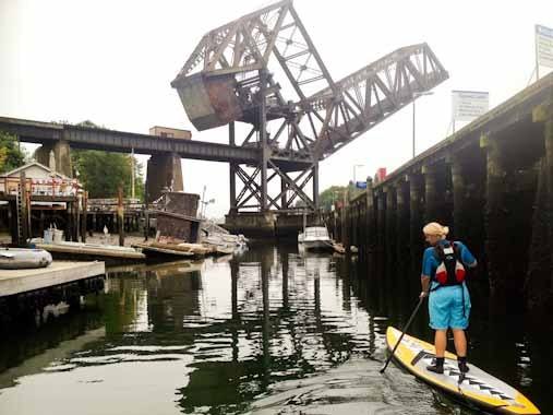 Casey did have to do it himself. He began kayaking in 1999 and was leading guided tours when stand-up paddleboarding (or SUP for short) came to Seattle around 2006, more in a trickle than a wave. By 2009 REI had jumped on the bandwagon, bringing SUP to the forefront, and a demand for classes along with it. By that point, Casey and a small contingent in Ballard had taught the form to themselves through trial and error. He was prepared to teach others how to paddle and, perhaps more important, fall.