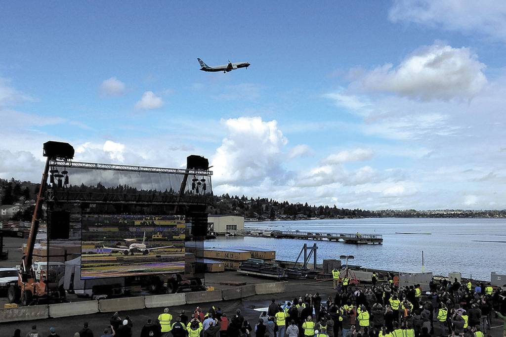 Piloted by Capt. Christine Walsh and Capt. Ed Wilson, the airplane took off at 10:52 a.m. Pacific time from Renton, near the factory where employees assembled the airplane. It landed at Boeing Field at 1:34 p.m.