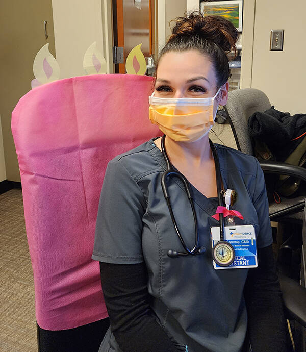 Sammie, a certified medical assistant, loved the care she received from Providence Midwifery so much, she eventually joined the team. “I had all of my OB care here for the birth of my son, had the same midwife throughout my pregnancy, and she was even on call when I delivered,” says Sammie, who also recounts treatment at other facilities before arriving at Providence. “I went with a different facility in Seattle for the birth of my first child, and I was not happy,” but says the care with Providence midwives “was so great, it made me want to come work here!”