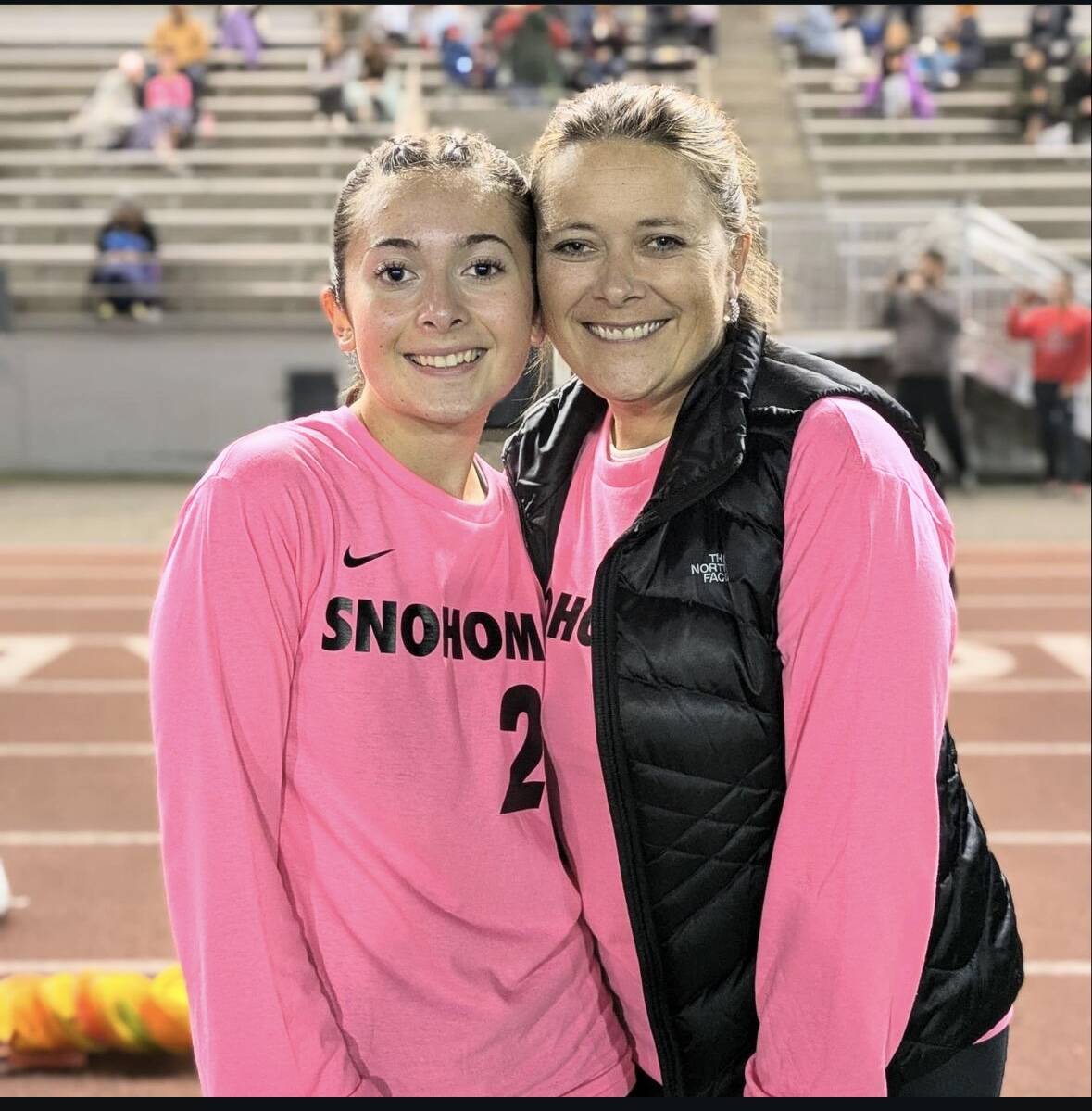 The Panthers hosted Snohomish School District-rival Glacier Peak on Oct. 14 in their now-annual “Kick for the Cure” game, donning pink uniforms as a nod to October being Breast Cancer Awareness month. Dodge used to work in the marketing department at Providence Health and helped institute a game each season where the team aimed to raise money for cancer research with the organization by selling concessions and collecting donations. The team raised over $1,000 for the Providence General Foundation Cancer Fund at the most recent fixture, as Dodge pledged to donate $100 for every goal as well in a 4-0 win. The booster club is still taking donations for the cause at @SHS_Girls_Soccer_Booster on Venmo.
