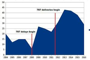 Boeing 787 delays coincided with spike in Airbus A330 leases